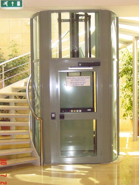 Kat kapılarında çift emniyetli kilit ve fiş kontak grubu. Emniyet sınır kesici kontaklar (seyir mesafesi dışındaki hareket için). Katlarda durmayı saplayan kat kesici kontaklar. Elektrik kesintisi sırasında otomatik olarak alt kata indirme sistemi. IP54 koruma sınıfı kontrol panosu. Aşırı hızlanma sırasında sistemi durduran kesici valf grubu.